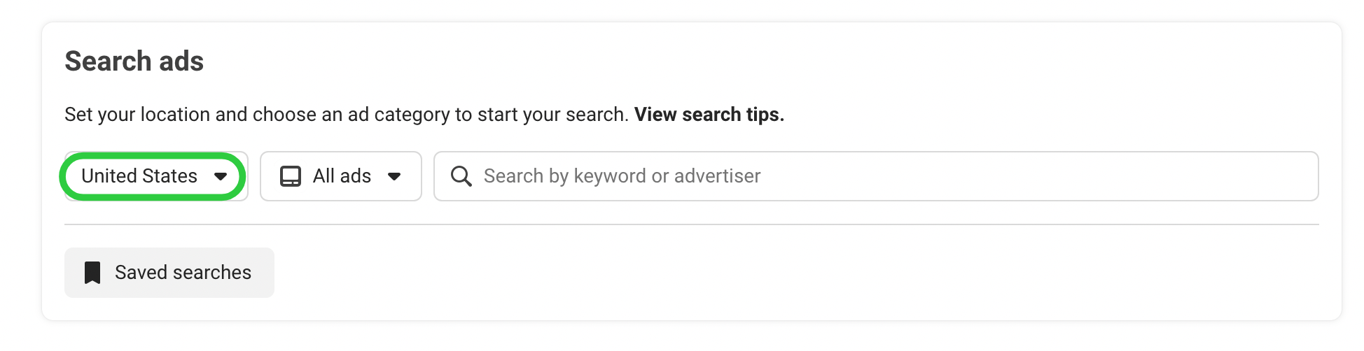 Ở đây bạn có thể lọc theo quốc gia để xem những quảng cáo đang chạy trong thị trường mục tiêu của bạn, ví dụ mình chọn United States