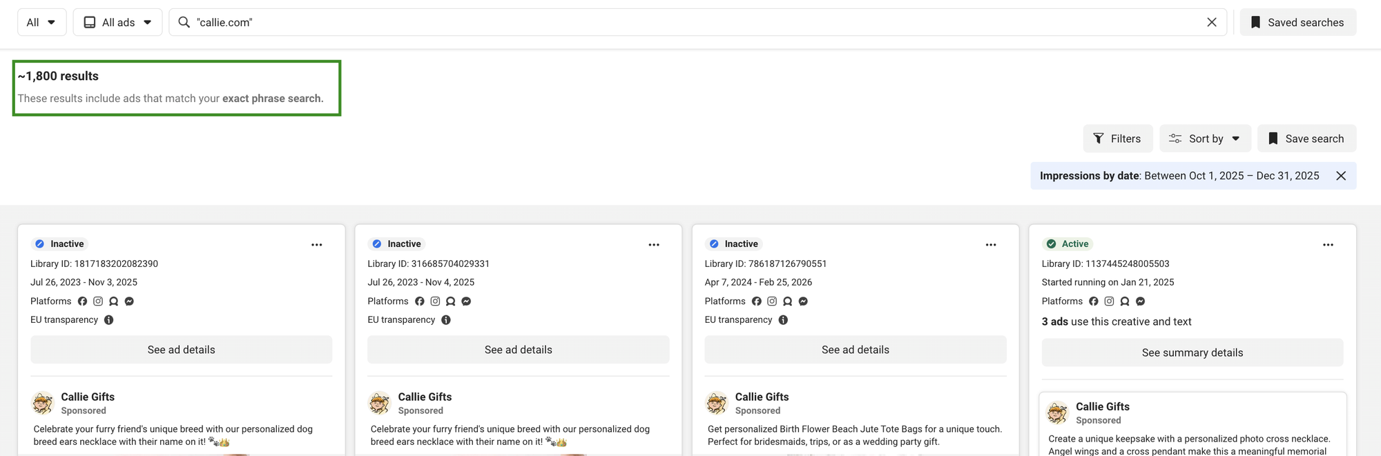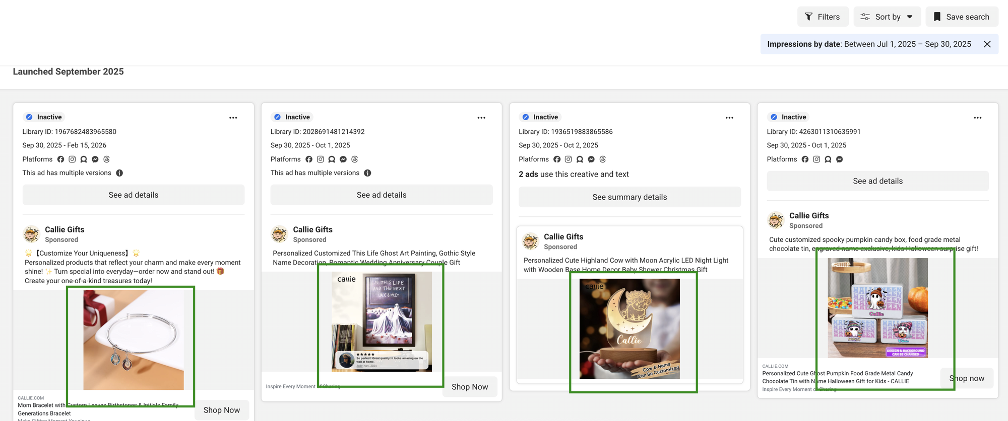 Giả sử bạn bán Personalized Gifts trên Shopify đi, và muốn đi nghiên cứu quảng cáo của đối thủ.