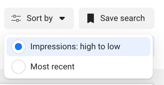 Ngoài ra bạn có thể Sort Ads theo: Impressions & Most Recent