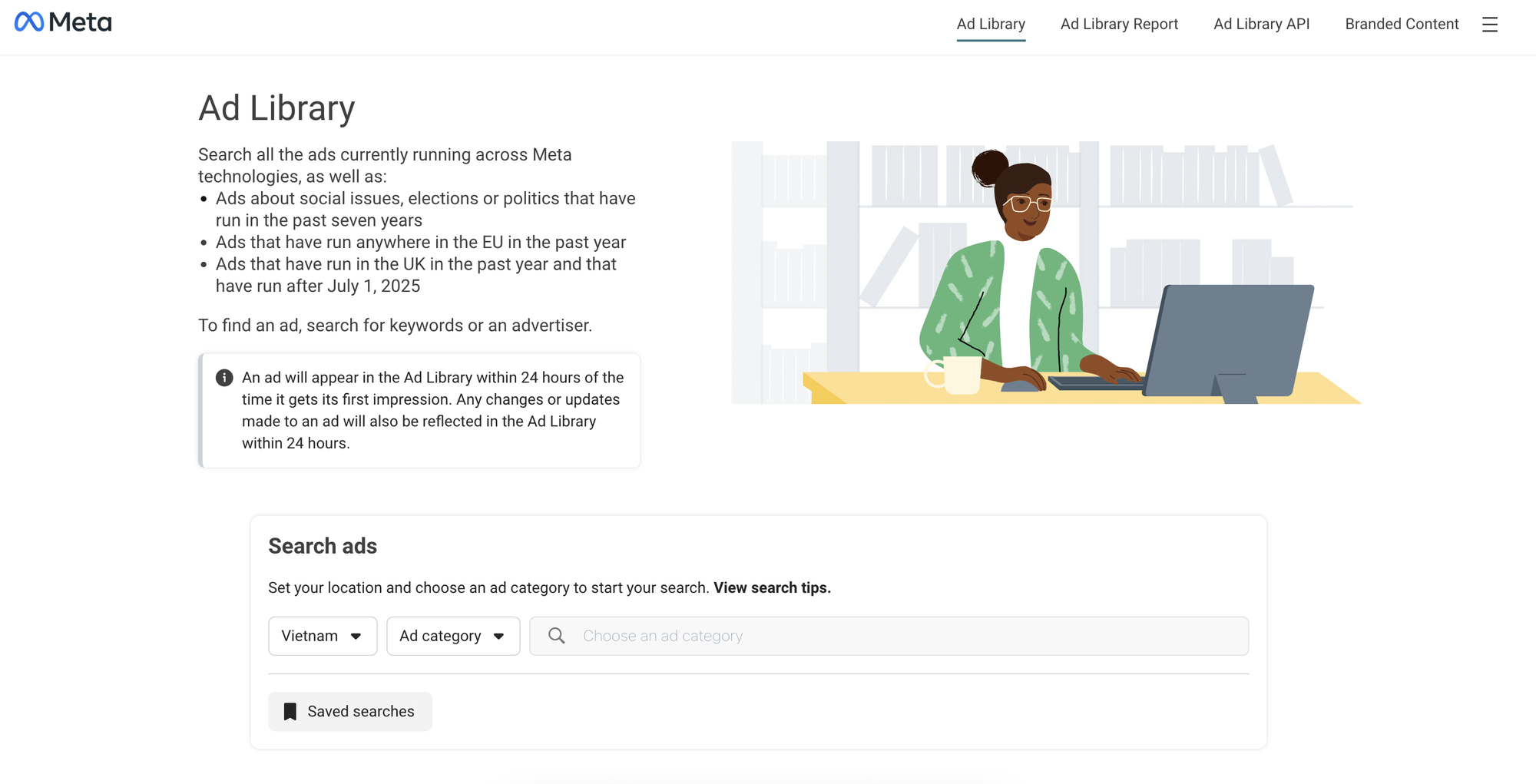 Hãy mở Ads Library lên và xem một vài ví dụ thực tế.