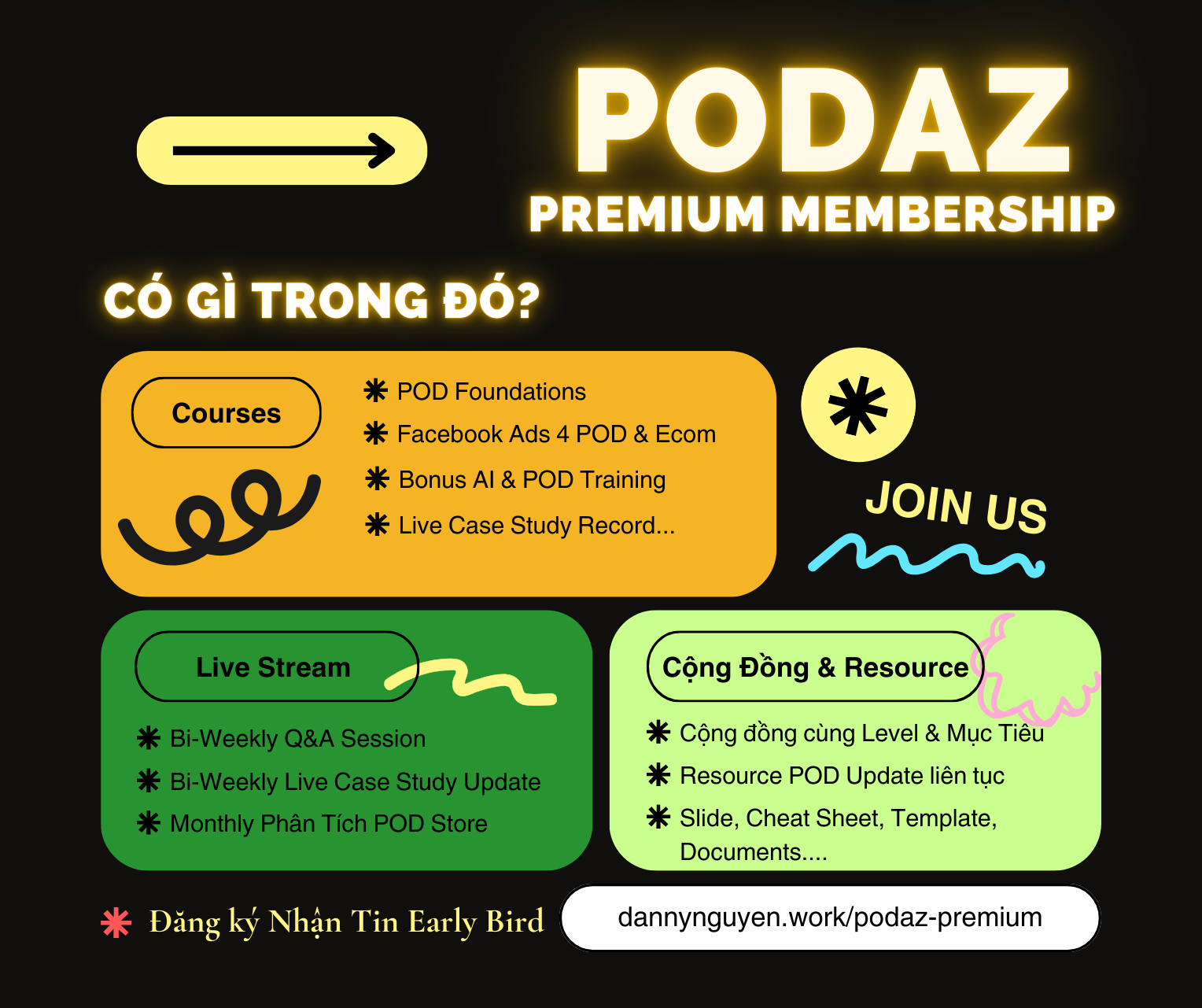 PODAZ Premium là chương trình trọng điểm của mình trong năm nay, mình dành nhiều thời gian để xây dựng nó cho anh em quan tâm đến việc kinh doanh POD xuyên biên giới, vậy thì trong đó có gì? Nếu bạn quan tâm thì đọc tiếp bên dưới nhé.